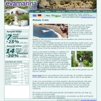 Μικρό ξενοδοχείο στα Μάταλα Κρήτης, στο όμορφο χωριό των ψαράδων, 50μ. από την παραλία. Θα βρείτε δωμάτια σε καλές τιμές και ενδιαφέρουσες προσφορές. Πληροφορίες, διαμονή, κρατήσεις. Προσθήκη στο Vres.gr: 2008-12-05 10:02:41 URL: http://www.evamarina.com