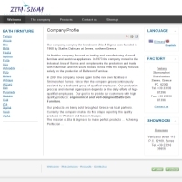 Ελληνική εταιρία κατασκευής επίπλων μπάνιου. Τα προϊόντα μας κατασκευάζονται από πρώτες ύλες άριστης ποιότητας και φημίζονται για τον σχεδιασμό και την λειτουργικότητα τους. Διαθέτουμε ευρύ δίκτυο αντιπροσώπων σε όλη την Ελλάδα. Προσθήκη στο Vres.gr: 2008-12-09 09:42:40 URL: http://www.zitasigma.com