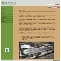 Η ΑΝΑΜΕΤ Α.Ε. ειδικεύεται στην επεξεργασία και εμπορία σκραπ σιδηρούχων και μη σιδηρούχων μετάλλων. Τα γραφεία της εταιρείας και οι κύριες εγκαταστάσεις επεξεργασίας και αποθήκευσης βρίσκονται στον Ασπρόπυργο Αττικής. Η ΑΝΑΜΕΤ δραστηριοποιείται ενεργά στην Νοτιοανατολική Ευρώπη, με τις θυγατρικές ΑΝΑΜΕΤ EOOD (στη Βουλγαρία) και ΑΝΑΜΕΤ DOO (στη Σερβία). Προσθήκη στο Vres.gr: 2009-05-20 09:29:58 URL: http://www.anamet.gr
