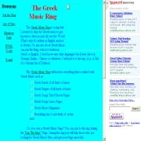 Ελληνικό μουσικό web ring με σκοπό να βοηθήσει την ελληνική μουσική να γίνει γνωστή σε άτομα από όλο τον κόσμο. Προσθήκη στο Vres.gr: 2007-12-03 10:11:12 URL: http://www.geocities.com/Athens/Ithaca/7680/