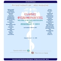 Καλώς ήρθατε στις σελίδες του "Greek Physiotherapy" του πρώτου ηλεκτρονικού περιοδικού για τον κλάδο της Φυσικοθεραπείας στην Ελλάδα. Προσθήκη στο Vres.gr: 2007-12-03 10:11:12 URL: http://www.physiotherapy.gr