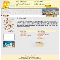 Το Syros-Hotels.net είναι τουριστικός οδηγός για το Κυκλαδίτικο νησί Σύρος. Προσφέρει μια λίστα επιλογών για διαμονή με φωτογραφίες και φόρμα κρατήσεων. Προσθήκη στο Vres.gr: 2007-12-03 10:11:12 URL: http://www.syros-hotels.net