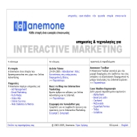 Η Anemone παρέχει σε διαφημιζόμενους και websites τεχνολογίες και υπηρεσίες για online advertising, e-mail marketing και web metrics. Προσθήκη στο Vres.gr: 2007-12-03 10:11:12 URL: http://www.anemone.gr/