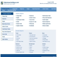 Τουριστική πύλη της Καλύμνου. Πληροφορίες για όλες τις δραστηριότητές σας στο νησί μας. Πως θα φτάσετε, που θα πάτε, τι θα δείτε, που θα μείνετε, κρατήσεις δωματίων. Προσθήκη στο Vres.gr: 2007-12-03 10:11:12 URL: http://www.kalymnos-holidays.com
