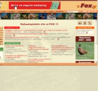 Πύλη για κυνηγούς και όχι μόνο. Περιέχει χάρτες καταφυγίων άγριας ζωής, ζωνών εκγύμνασης σκύλων και διάβασης, θηρεύσιμα και προστατευόμενα, προστατευμένες περιοχές, όπλα, φυσίγγια, νομοθεσίες και πολλά πολλά άλλα. Προσθήκη στο Vres.gr: 2007-12-03 10:11:12 URL: http://www.e-fox.gr