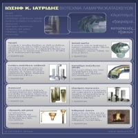 Η εταιρεία Ι. Ιατρίδης ιδρύθηκε το 1968 ως διάδοχη κατάσταση της από το 1955 εταιρείας υπό την κ. Χρυσούλα Πετροπούλου. Η εταιρεία από ίδρυσής της ασχολείται με τις λαμαρινοκατασκευές Προσθήκη στο Vres.gr: 2007-12-03 10:11:12 URL: http://www.iiatridis.gr