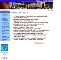 Μπασκετμπωλίστρια. H Tίνα Mιτέκο έχει αγωνιστεί στo πανεπιστημιακό πρωτάθλημα μπάσκετ της Αμερικής και στην Ευρώπη. Προσθήκη στο Vres.gr: 2007-12-03 10:11:12 URL: http://www.tinamiteko.com
