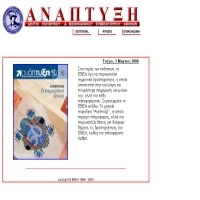 Το μηνιαίο περιοδικό "Ανάπτυξη", το οποίο παρέχει πληροφορίες, αλλά και παρουσιάζει θέσεις για διάφορα θέματα, τις δραστηριότητες του ΕΒΕΑ, καθώς και ενδιαφέροντα άρθρα. Προσθήκη στο Vres.gr: 2007-12-03 10:11:12 URL: http://www.acci.gr/anaptixi/