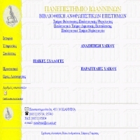 Πανεπιστήμιο Ιωαννίνων. Ιστορία, υπηρεσίες, συνδέσεις, προσωπικό, ώρες λειτουργίας, αναζήτηση υλικού, ειδικές συλλογές.