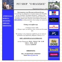Pet Shop "O Φιλόζωος" στην Καλλιθέα, επί της Λεωφόρου "Ελευθερίου Βενιζέλου " (Θησέως 222). Προσθήκη στο Vres.gr: 2007-12-03 10:11:12 URL: http://www.filozoos.gr/