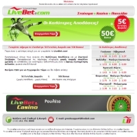 Κατάλογος εταιριών στοιχημάτων και καζίνο. Δωρέαν στοιχήματα και μπόνους. Προσθήκη στο Vres.gr: 2007-12-03 10:11:12 URL: http://www.01bet.gr/