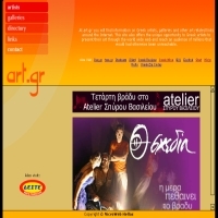 Δικτυακός τόπος για την τέχνη στην Ελλάδα. Πληροφορίες, καλλιτέχνες, θέατρα, γκαλερί. Προσθήκη στο Vres.gr: 2007-12-03 10:11:12 URL: http://www.art.gr/