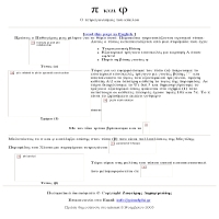 Δικτυακός τόπος με μαθηματικό περιεχόμενο για τη σχέση του π (3.14) με το φ και άλλες μαθηματικές αποδείξεις του Ζαφείρη Δημητριάδη. Προσθήκη στο Vres.gr: 2007-12-03 10:11:12 URL: http://www.piandphi.gr/