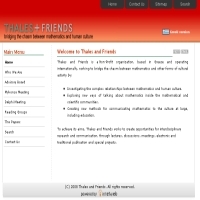 Μη κερδοσκοπική εταιρεία, με σκοπό το γεφύρωμα του χάσματος μεταξύ μαθηματικών και πολιτισμού. Πληροφορίες, άρθρα, δραστηριότητες. Προσθήκη στο Vres.gr: 2007-12-03 10:11:12 URL: http://www.thalesandfriends.org/