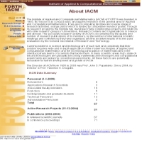 Παρουσίαση της δομής και των ερευνητικών δραστηριοτήτων του Ινστιτούτου Εφαρμοσμένων Μαθηματικών. Προσθήκη στο Vres.gr: 2007-12-03 10:11:12 URL: http://www.iacm.forth.gr/