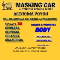 Χρώματα αυτοκινήτων και υλικά βαφής αυτοκινήτων, στη Βάρη Αττικής. Πληροφορίες, προϊόντα. Προσθήκη στο Vres.gr: 2007-12-03 10:11:12 URL: http://www.fanovafes.gr/maskingcar/