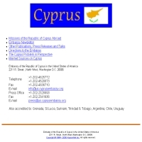 Σελίδα της Κυπριακής πρεσβείας στις Ηνωμένες Πολιτείες της Αμερικής Προσθήκη στο Vres.gr: 2007-12-03 10:11:12 URL: http://www.kypros.org/Embassy