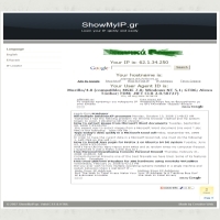 Διαδικτυακός τόπος ανεύρεσης και γεωγραφικού εντοπισμού IP διευθύνσεων. Προσθήκη στο Vres.gr: 2007-12-03 10:11:12 URL: http://www.showmyip.gr/