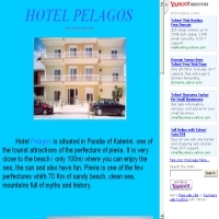 Ενοικιαζόμενα δωμάτια, στην Κατερίνη. Ξενοδοχείο στη Χαλκιδική. Πληροφορίες, διαμονή, υπηρεσίες, κρατήσεις. Προσθήκη στο Vres.gr: 2007-12-03 10:11:12 URL: http://www.geocities.com/hotel_pelagos/